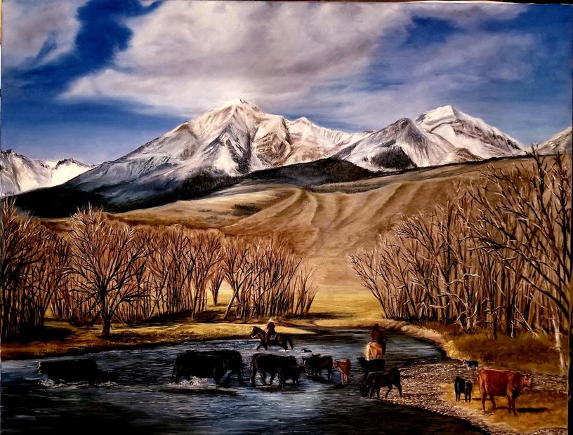 This is one of the first paintings I completed after throwing the paint brushes away for 30 years. I hope I was able to capture the feelings I felt when I saw this photo. The love of country life is a love that never grows old.